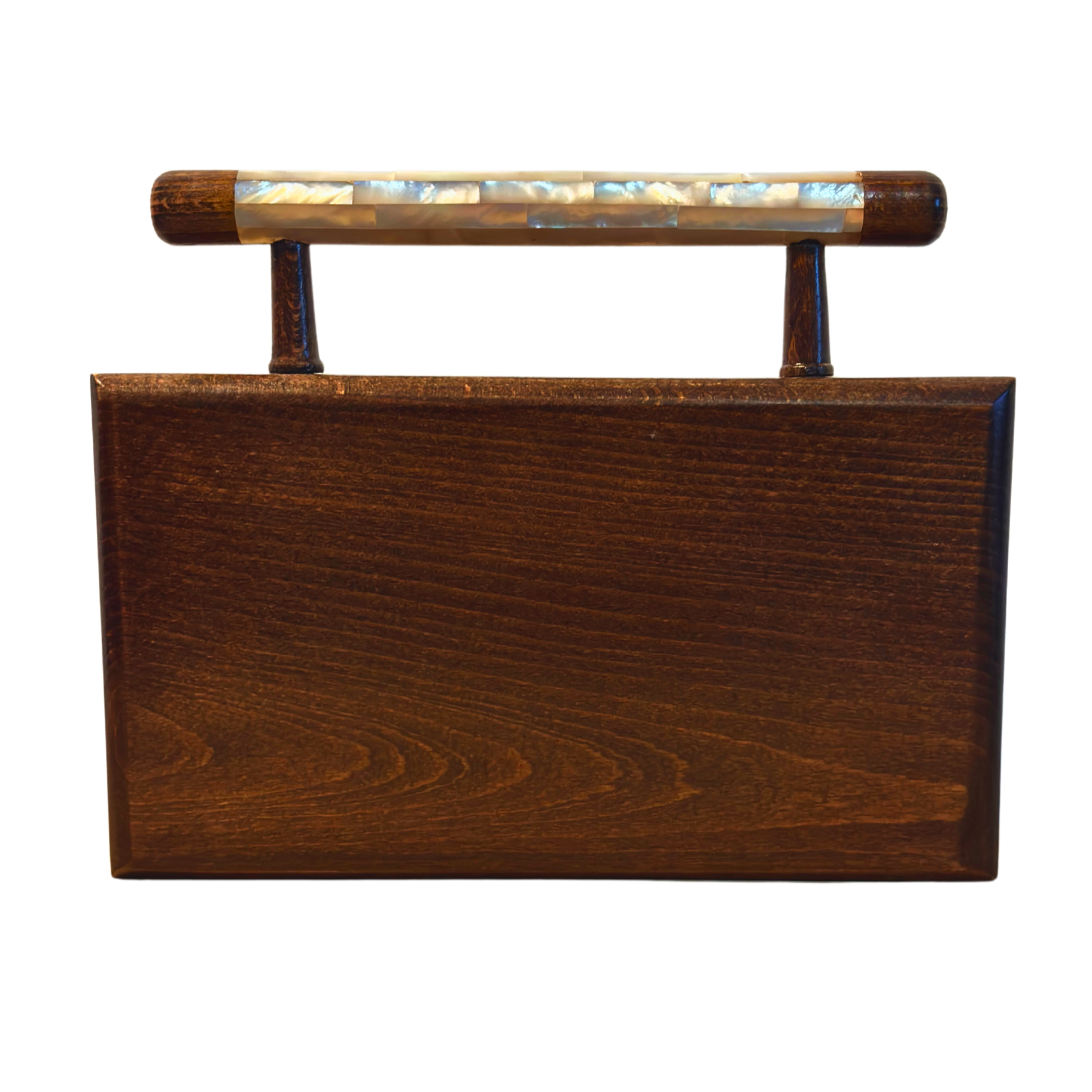 Damaszener Clutch, Perlmutt, Nussbaumholz, orientalische Tasche, Brokatfutter, Handarbeit, Damascus Box