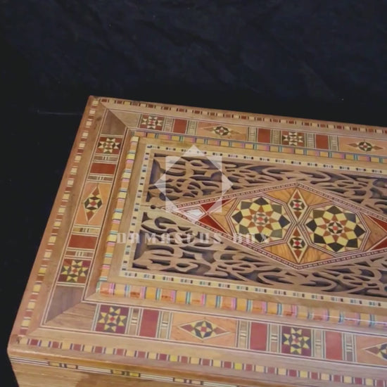 grande boîte mosaïque rectangulaire, boîte artisanale en bois de hêtre, boîte à bijoux damascène, coffre artisanal pour souvenirs, boîte de rangement en bois, artisanat de Damas, boîte cadeau artisanale, cadeau de mariage, cadeau d'anniversaire, cadeau d'anniversaire unique, cadeau en bois premium, boîte de Damas, boîte syrienne, cadeau pour elle, cadeau pour lui