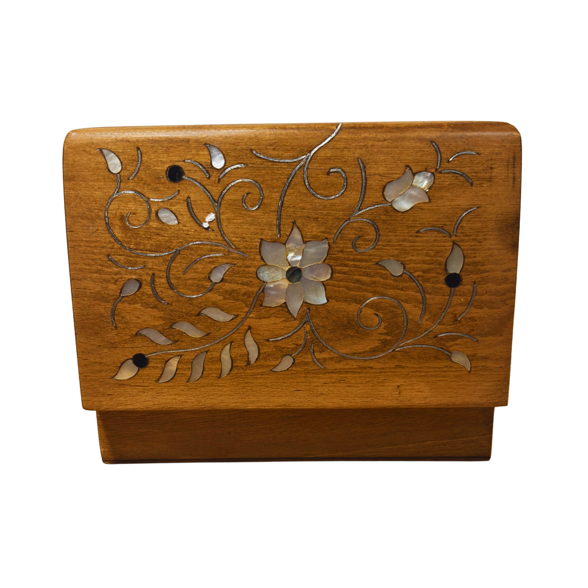 Questa scatola rappresenta il prestigioso stile damasceno “Mashghal Arabi”, noto per le sue incisioni profonde e l’eleganza orientale.