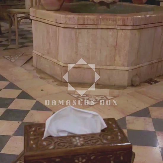 portafazzoletti intagliato a mano, madreperla, arte damascina, accessorio artigianale, decorazione orientale, Damascus Box