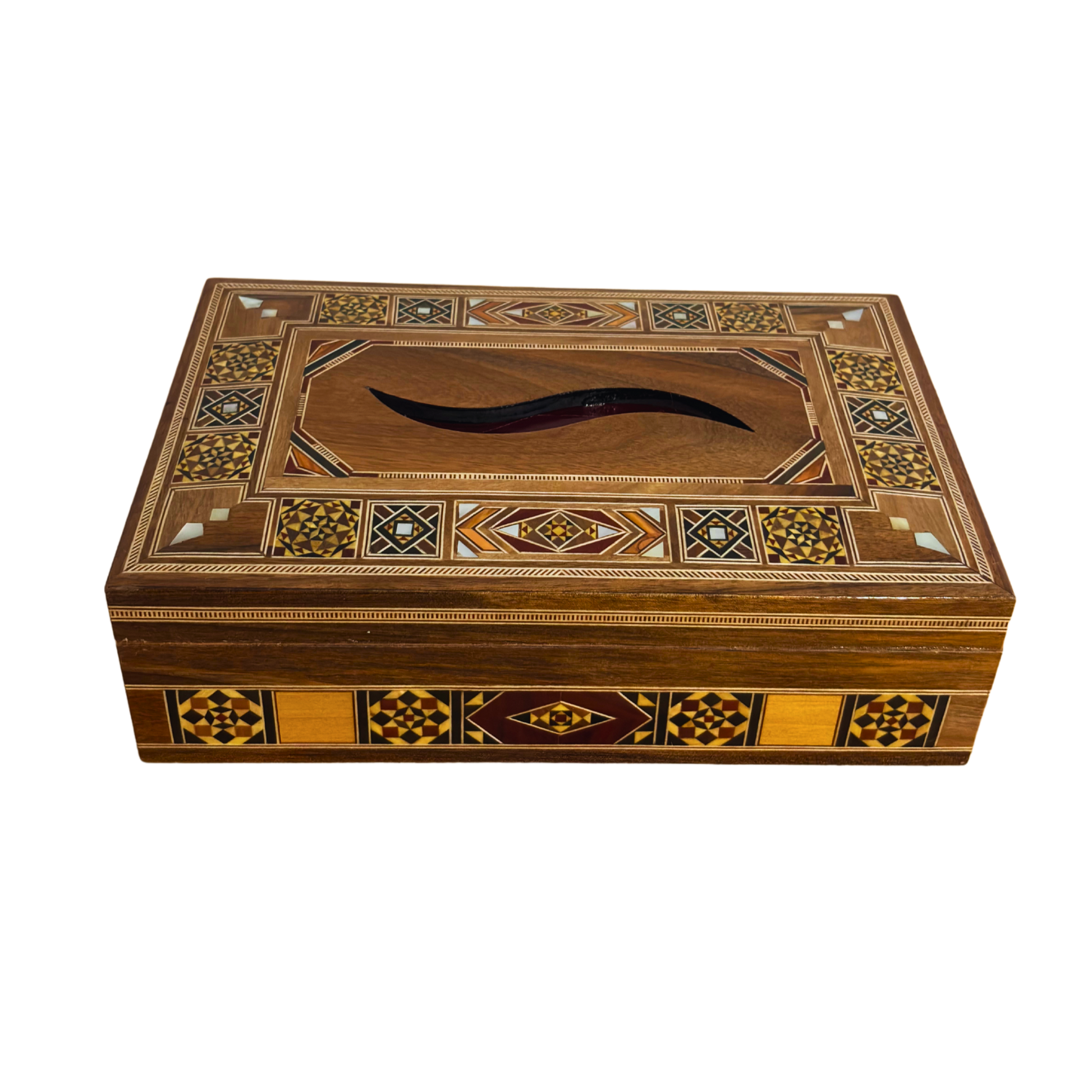 Elegante Porta Fazzoletti Damaschino in Legno – Incastro di Madreperla & Interno in Velluto