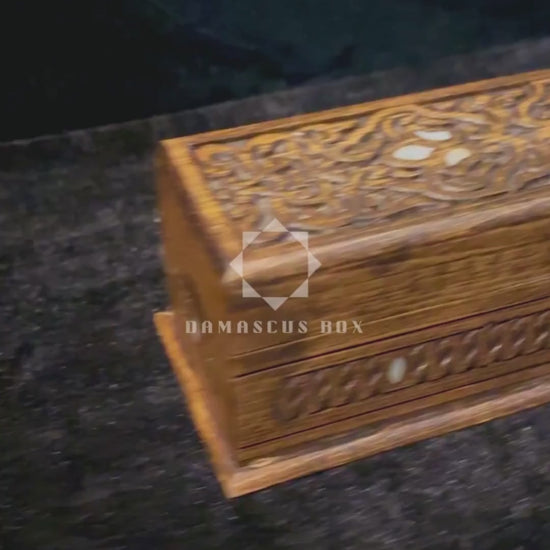 rzeźbiona szkatułka, szkatułka z masą perłową, rzemiosło z damaszku, luksusowy prezent, rękodzieło syryjskie, Damascus Box